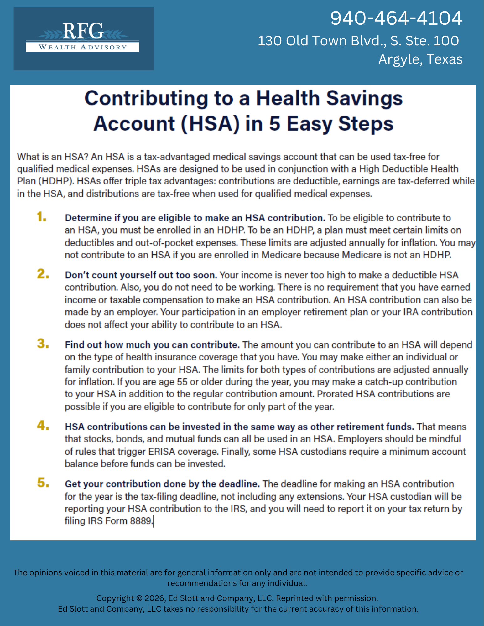 Want a step-by-step guide? Download our free guide “Contributing to a Health Savings Account in 5 Easy Steps” to learn how HSAs work, see the 2026 contribution limits, and discover simple ways to make the most of this underused financial tool.