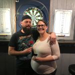 Darts is something my husband and I get to enjoy together. We have played competitive darts since we got married in 2011. This picture is when we won our doubles league just before having our second kiddo. We now have date nights in the garage playing people all around the world on our Target Nexus Dartboard, while the little ones sleep.